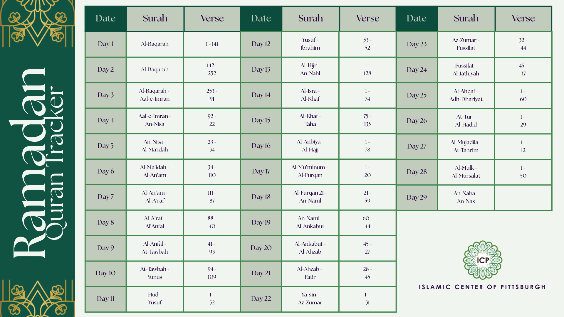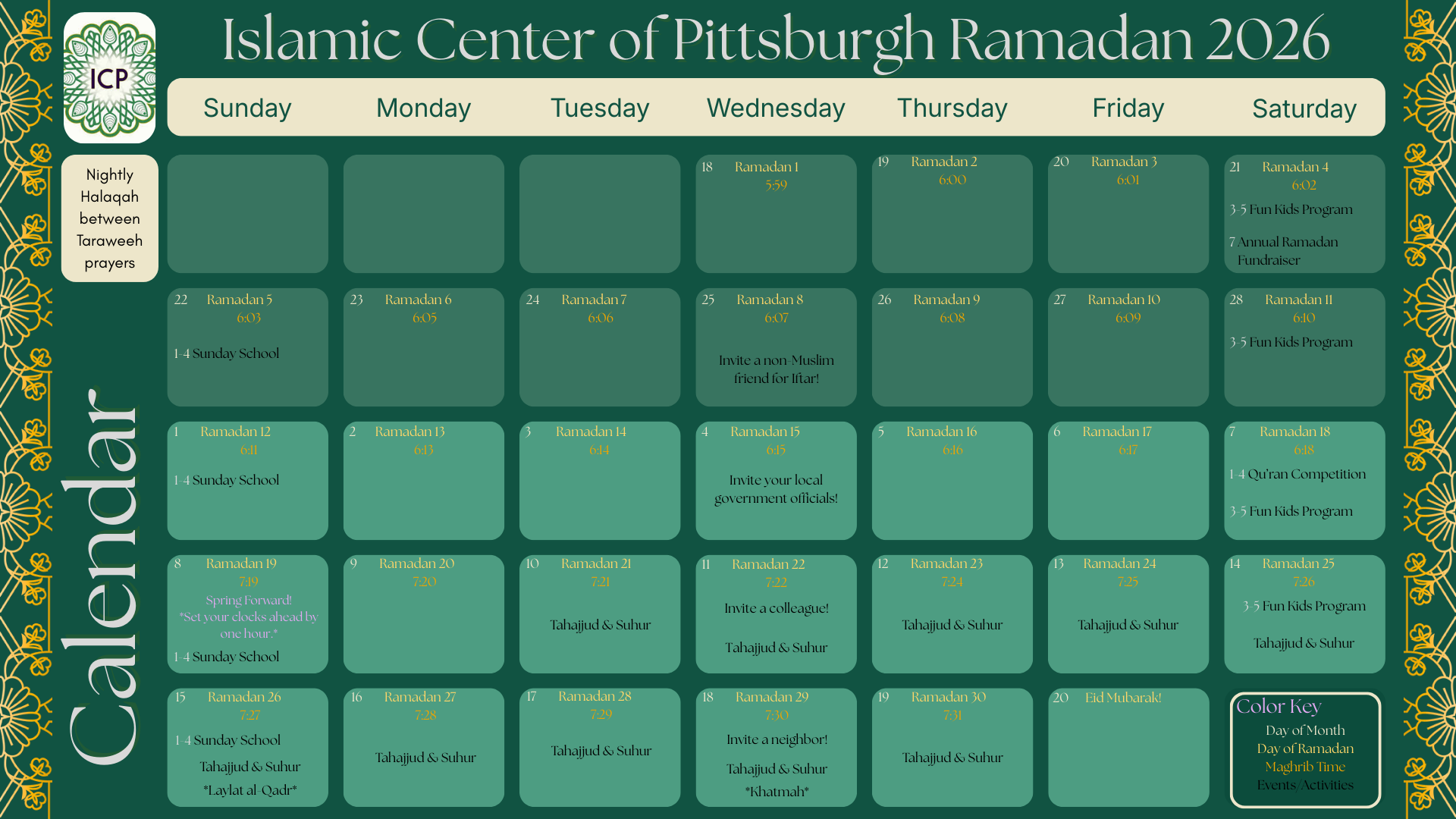During this Holy month, ICP will continue its long-standing traditions, including:
